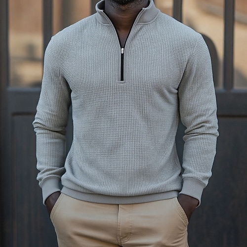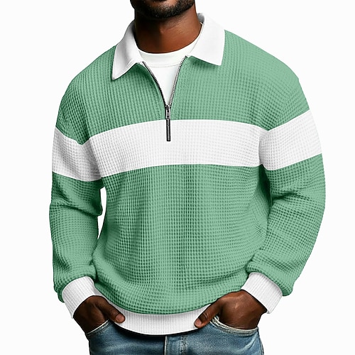 Per uomo Magliette Polo a Nido d'Ape Polo con zip a un quarto All'aperto Casual Zip a un quarto Manica Lunga Moda Moderno Tinta unica Lavorato a maglia Primavera Primavera Autunno Vestibilità comoda