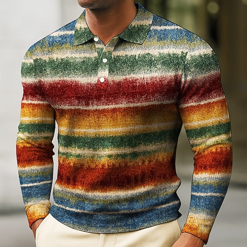 Per uomo A righe Magliette Polo a Nido d'Ape Manica Lunga Magliette polo Camicie con Colletto Vintage Athleisure Abbigliamento quotidiano Stampa 3D Bottoni Primavera Autunno Blu Rosso Verde