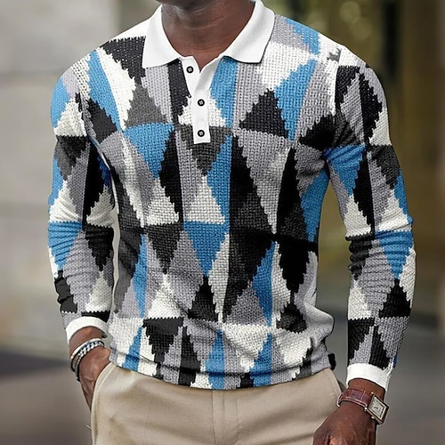 Per uomo Geometrico Pois Magliette Polo a Nido d'Ape Testurizzato Manica Lunga Magliette polo Bavero Abbigliamento Sportivo Casual Scuola Athleisure Abbigliamento quotidiano Stampa 3D Primavera