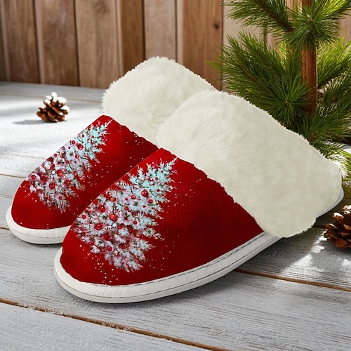 pantofole natalizie da donna con decorazioni di Babbo Natale e renne, comode pantofole rosse in peluche per le feste come regalo di Natale e comfort invernale