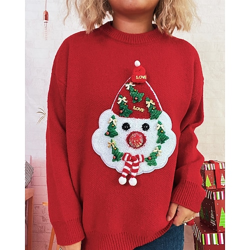 Per donna Felpa Maglione Pom Pom regalo di Natale Streetwear Pupazzo di neve Girocollo Lavorato a maglia Stampato Manica Lunga Top Regolari Maglia Natale Ferie Uscire Rosso Autunno Inverno