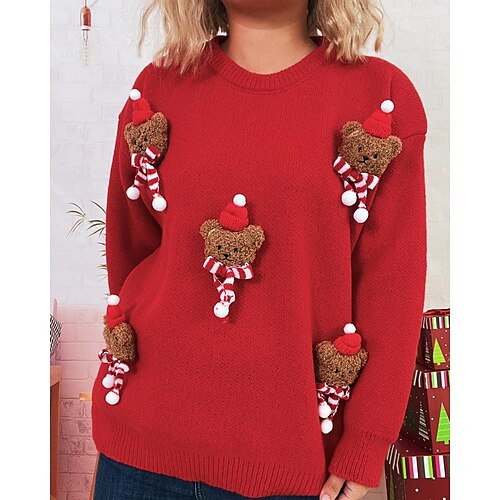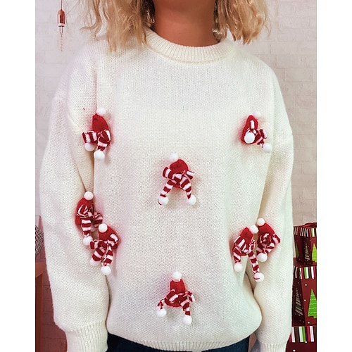 Per donna Felpa Maglione Pom Pom regalo di Natale Carino Animale A Coste Girocollo Lavorato a maglia Manica Lunga Top Regolari Maglia Natale All'aperto Uscire Bianco Rosso Autunno Inverno
