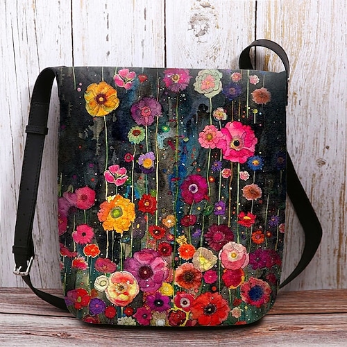 borsa a tracolla da donna in poliestere vellutato, con motivi floreali e ad albero della vita, opzioni multi-design per stili casual e bohémien