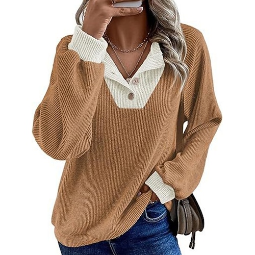 Per donna Blusa Semplice Elegante Manica Lunga Scollo a V Top Regolari Quotidiano Ferie Uscire Patchwork Bottoni Nero Bianco Vino Arancione Autunno