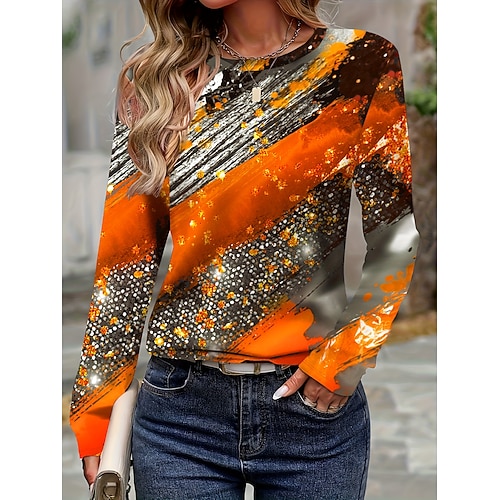 Per donna Maglietta Ombre Grafico Astratto Vintage Moda Elegante Manica Lunga Girocollo Top Regolari Quotidiano Weekend Stampato Arancione Autunno Inverno