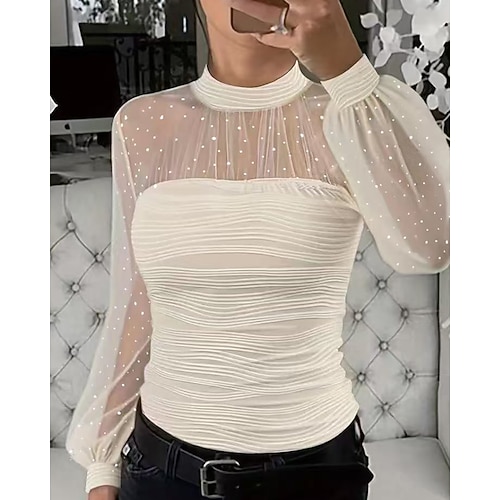 Per donna Camicia Blusa Semplice Elegante Manica Lunga Collo Alto Top Regolari Quotidiano Ferie Uscire Patchwork Rete Nero Bianco Rosa Estate Primavera