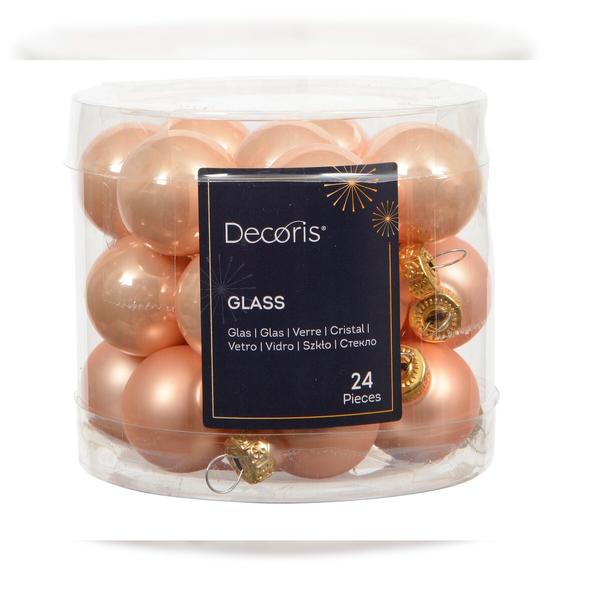 24 Weihnachtskugeln Glas 2,5cm matt & glänzend Mini Christbaumkugeln Weihnachtsbaumkugeln Klein Christbaumschmuck Weihnachtsbaumschmuck Pfirsich Perle