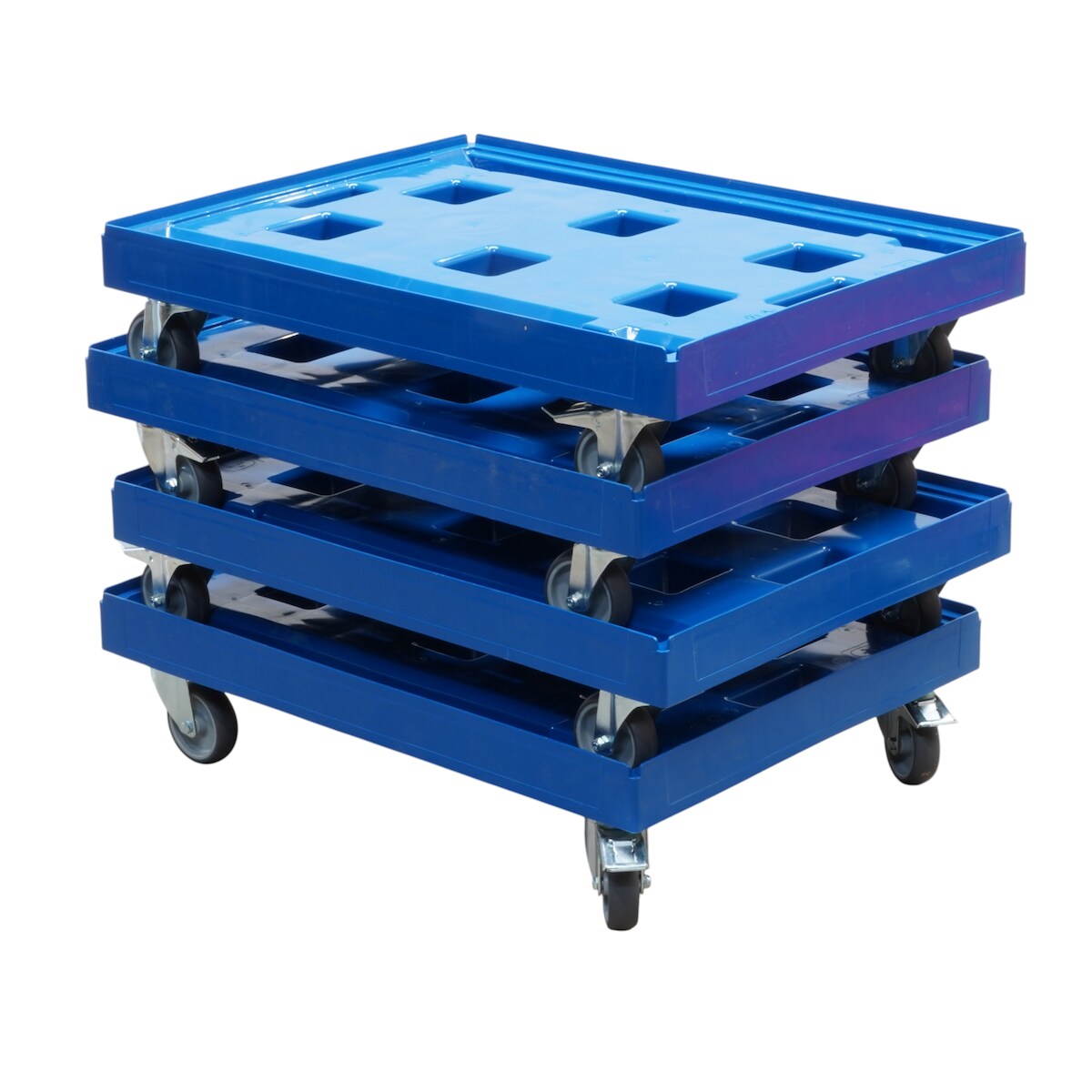 4 Stück Gigant Transportroller in Blau für Kisten 80 x 60 cm - 400 kg Traglast mit 2 Bremsen