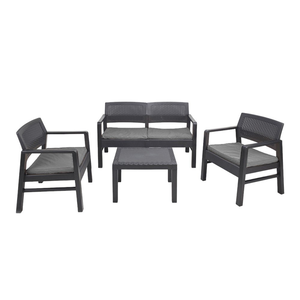 Dmora Outdoor-Lounge-Set Carpi, Gartengarnitur mit 2 Sesseln, 1 Sofa und 1Couchtisch, 100 % Made in Italy, Anthrazit
