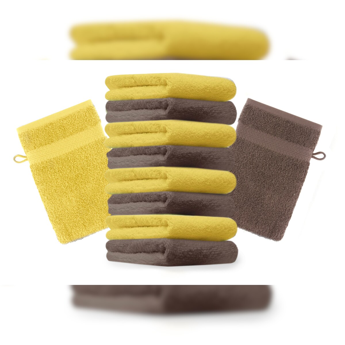 Betz 10 Stück Waschhandschuhe PREMIUM 100% Baumwolle Waschlappen Set 16x21 cm Farbe gelb und nussbraun