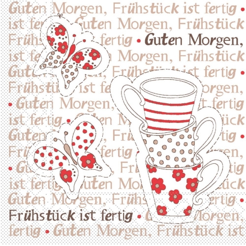 Tissue Serviette Frühstück ist Fertig! in Rot-Braun, 24 x 24 cm, 150 Stück - Mank