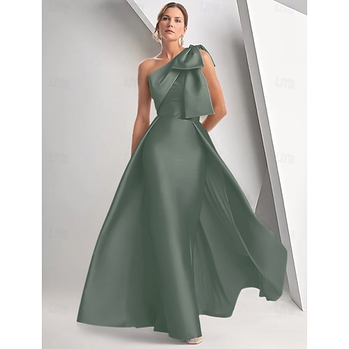 Abito da Sera A-Line Vestito Elegante Matrimonio Formale Lunghezza Pavimento Senza Maniche Una Spalla Matrimonio Satin con Fiocco/i