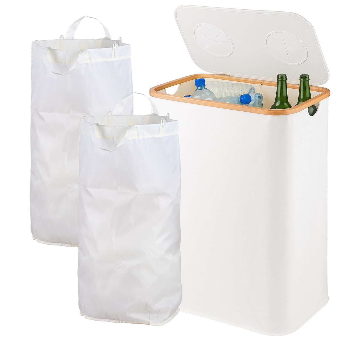 Relaxdays Pfandflaschen Sammelbehälter, 170 L, bis 100 Flaschen, 2 Innenbeutel, Flaschensammler für Glas & Plastik, weiß