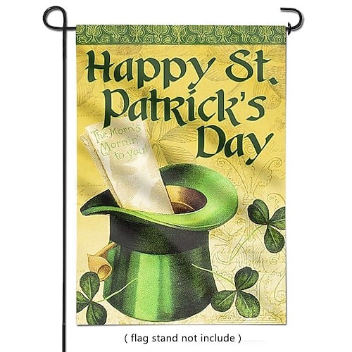 bandiera da giardino per il giorno di San Patrizio, disegno di un leprecauno con trifoglio, verde Decorazione irlandese dorata, bandiera da giardino per la celebrazione di San Patrizio.
