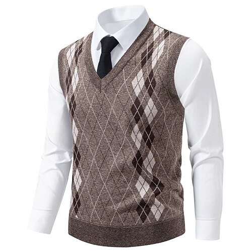 Per uomo Felpa Gilet Maglione A Coste Maglia Top Regolari Lavorato a maglia Slim Fit Rombi Scollo a V Maglieria Contemporaneo Formale Casuale Abbigliamento Autunno Blu Grigio chiaro L XL 2XL