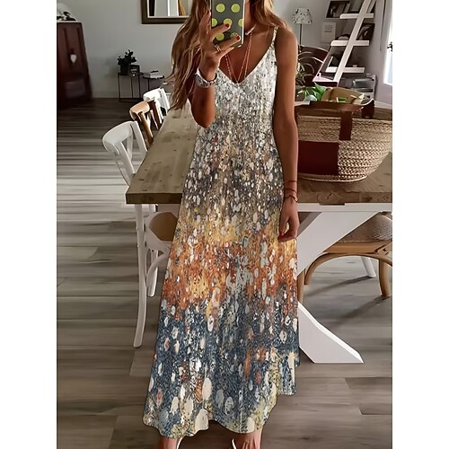 Per donna Abito maxi Vestito Estivo Abito a trapezio Abito Sottoveste Vacanza Casual Boho Spiaggia Vestibilità comoda Grafico Geometrico Graffiti Senza Maniche Scollo a V Blu bianco blu Giallo Rosso