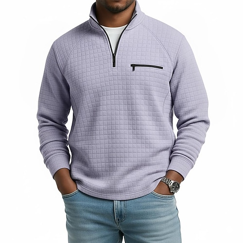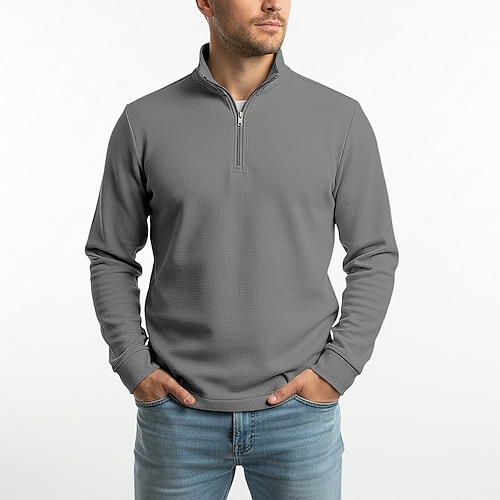 Per uomo Magliette Polo a Nido d'Ape Polo con zip a un quarto Casuale All'aperto Zip a un quarto Manica Lunga Moda Moderno Tinta unica Testurizzato Lavorato a maglia Primavera Autunno Autunno