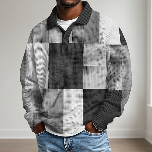 Per uomo Geometrico Blocco di colori Magliette Polo a Nido d'Ape Testurizzato Manica Lunga Magliette polo Bavero Abbigliamento Sportivo Casual Scuola Athleisure Abbigliamento quotidiano Stampa 3D