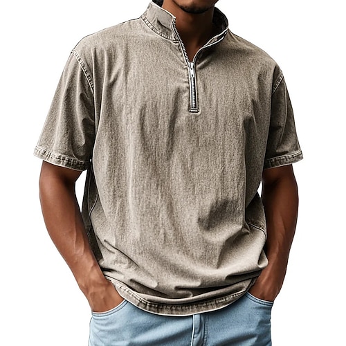 Per uomo Polo Polo con zip a un quarto Abbigliamento quotidiano Data Zip a un quarto Manica Corta Moda Essenziale Semplice Cerniera Estate Vestibilità regolare Vinaccia Nero Bianco Blu marino Viola