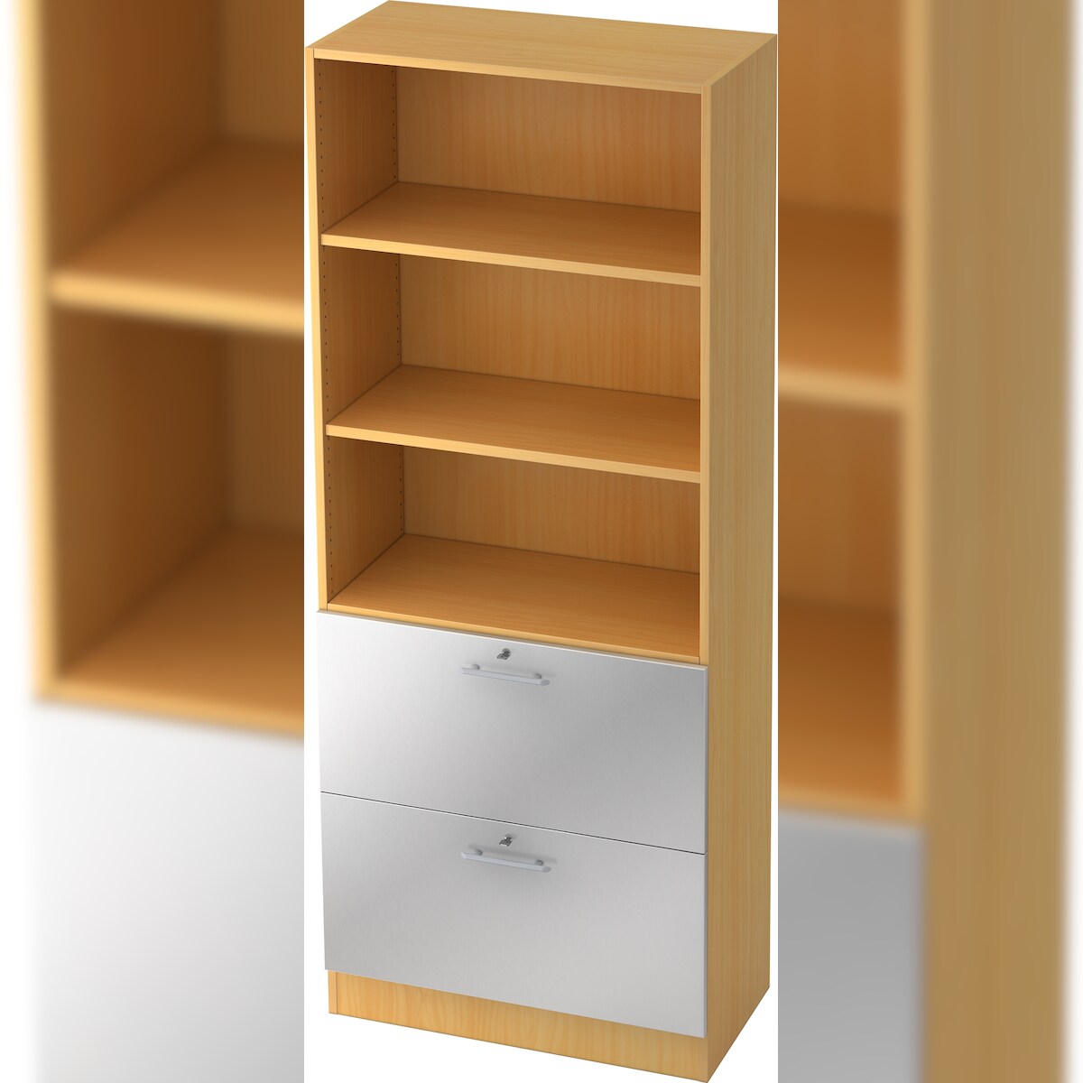bümö office Aktenschrank mit Hängeregister-Schubladen abschließbar, Büroschrank Holz, 80cm breit in Buche/Silber - Hängeregistratur für Hängeordner,