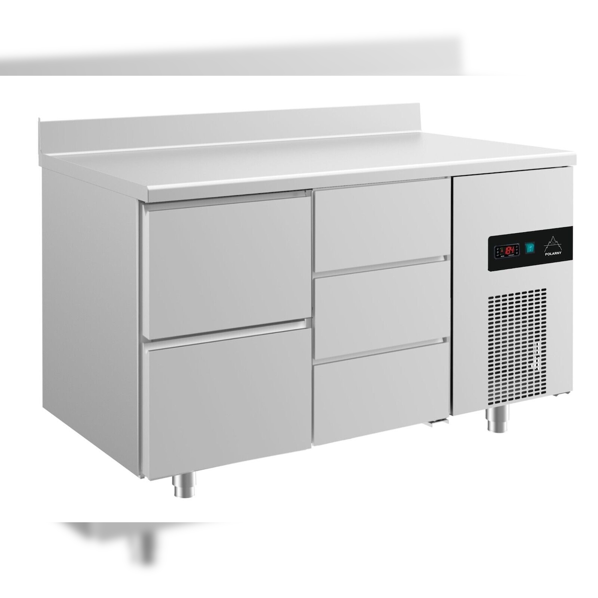 A&S polarny Gastro Edelstahl Kühltisch Umluft 2 links /3 Schubladen rechts Aufkantung, 1400x700x850mm -2/+8°C 281l