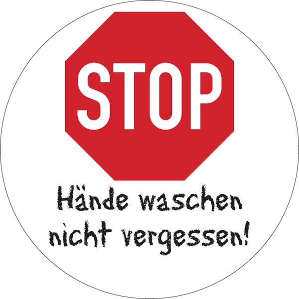 Hygieneschild, STOP Hände waschen nicht vergessen (Handschrift), Folie - 200 mm Folie selbstklebend