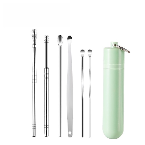 Set di 6 strumenti per la rimozione del cerume in acciaio inossidabile, cucchiaio rotante a spirale per la pulizia delle orecchie e la raccolta del cerume.