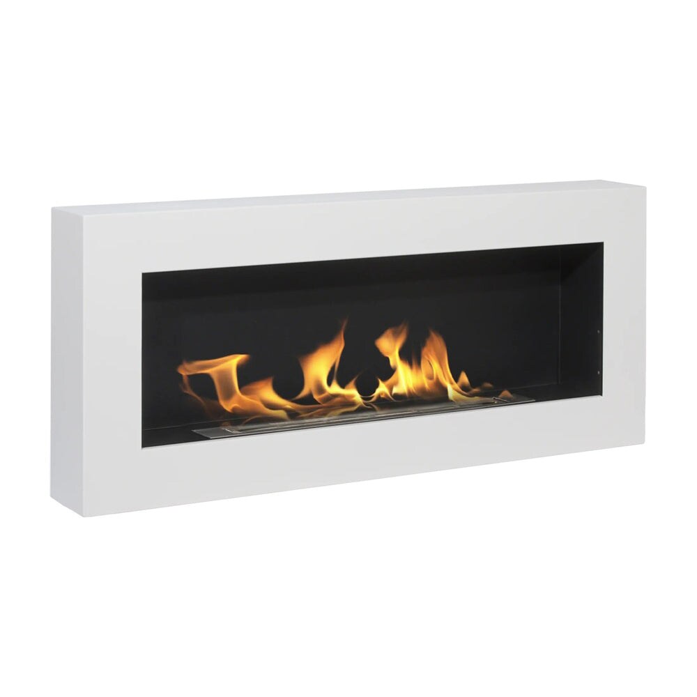 Divina Fire Siena weißer, wandmontierter Bioethanolkamin, L 90 x T 12 x H 40