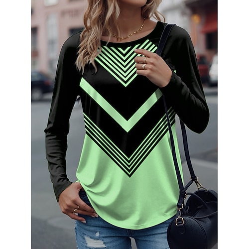 Per donna Maglietta Grafico Geometrico Elegante Casual Manica Lunga Girocollo Top Regolari Quotidiano Patchwork Stampato Giallo Rosso Blu Viola Verde Estate Autunno Inverno