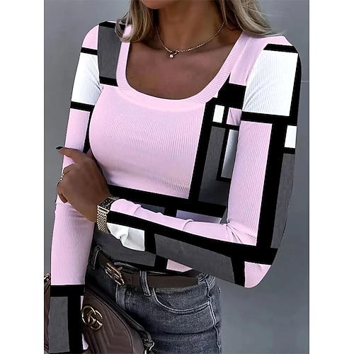 Per donna Maglietta Grafico Geometrico Elegante Casual Manica Lunga Girocollo Top Regolari Quotidiano Weekend Stampato Blu Bianco Rosa Viola Verde Primavera Autunno Inverno