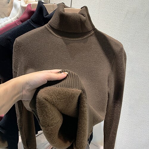 Per donna Felpa Maglione Elegante Streetwear Casual Tinta unica Dolcevita Lavorato a maglia Manica Lunga Top Regolari Maglia Ferie Uscire Nero Bianco Autunno Inverno