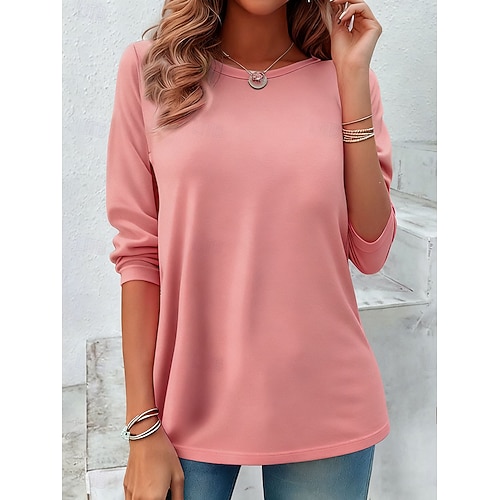 Per donna Blusa Tinta unica Elegante Casual Manica Lunga Collo a U Top Regolari Quotidiano Rosa Vino Verde militare Blu Cachi Primavera Autunno Inverno