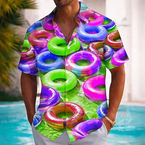 Per uomo Salvagente galleggiante Camicia hawaiana estiva Camicia con Bottoni Camicia Aloha Manica Corta Hawaiano Vacanza Abbigliamento mare Estate Primavera Collo ripiegato Stampa 3D camicie con