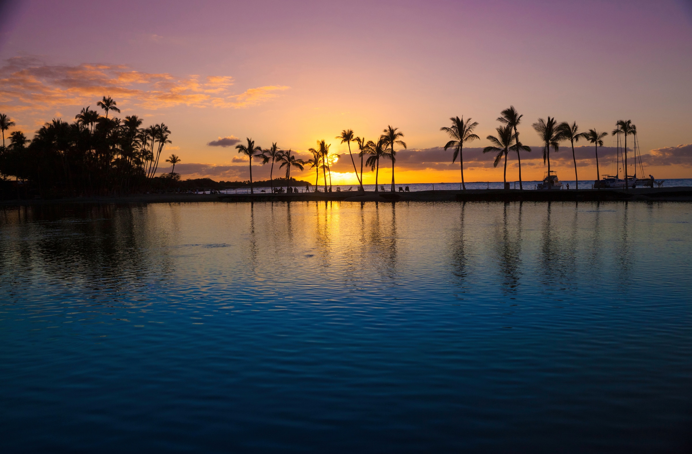 Papermoon Fototapete "SEE-LANDSCHAFT-STEG WALD WALD MEER STRAND BOOTE SONNE" bunt B/L: 3,5mm x 2,6mm, Bahnen: 7 Stk. St.