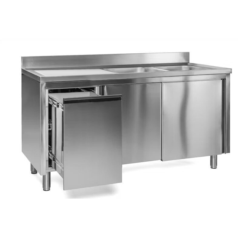 Spülschrank 2 Becken rechts 2000 x 600 x 850 mm Abfallbehälter links