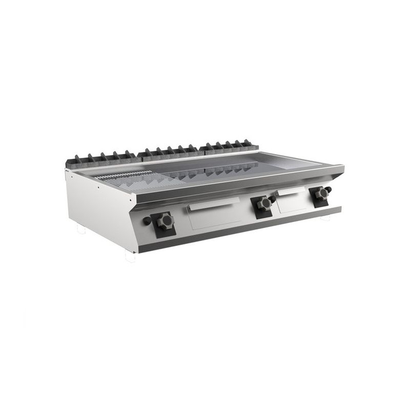 Mareno M1-700 Gas-Grillplatte mit 2/3 glatter und 1/3 gerippter Chromplatte, 120cm