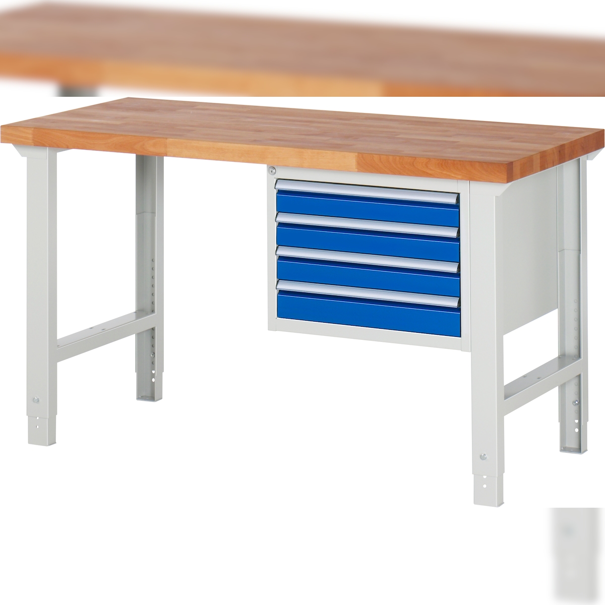 PROREGAL Werkbank Serie 7000 - Modell 7133 | HxBxT 79-114x150x70cm | 4x Schublade | Schubladenmaße 4x90mm | Lichtgrau | Arbeitstisch Werktisch