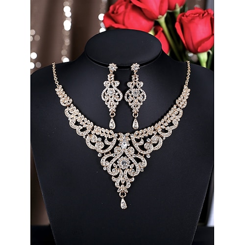 Set di gioielli da donna con strass di cristallo per feste di ballo - elegante collana in argento e orecchini pendenti, stile glamour vintage per serate, ballo di fine anno occasioni formali