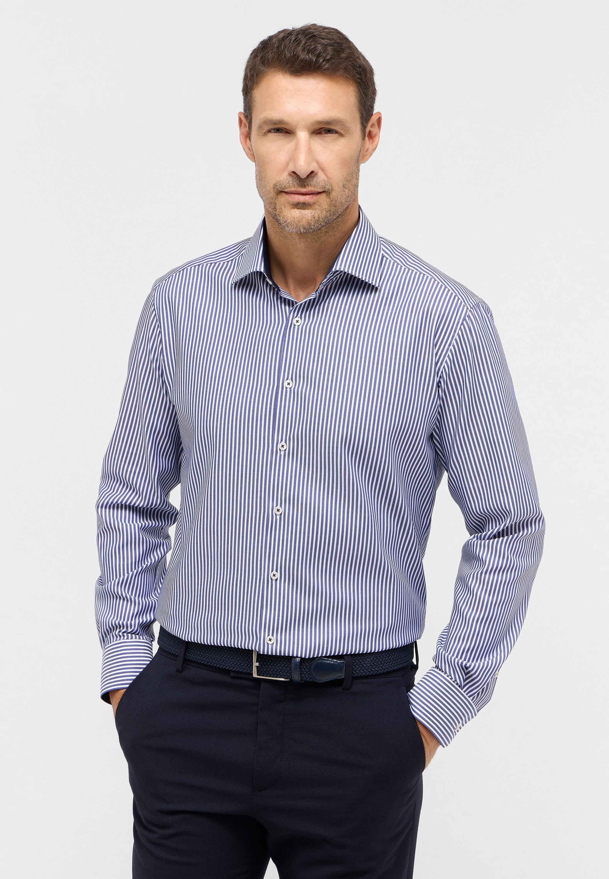 Langarmhemd ETERNA "MODERN FIT", Herren, Gr. 42, Normalgrößen, blau (dunkelblau), Twill, 100% cotton, tailliert, Langarm Manschette, Hemden, NON IRON (bügelfrei)