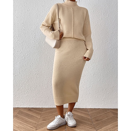 Per donna Elegante Attivo Streetwear Set di gonne Bolero Top Manica Lunga Collo alla coreana Tinta unica All'aperto Vacanza Casuale Nero Marrone Cachi Autunno Vestibilità regolare