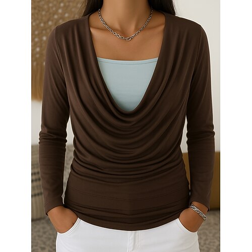 Per donna Camicia Elegante Manica Lunga Scollo a Cascata Top Regolari Quotidiano Ferie Viola Marrone Grigio Primavera Autunno Inverno