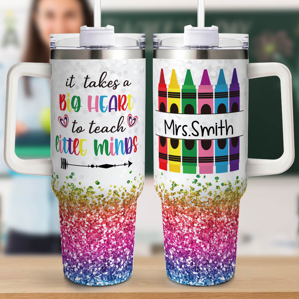 Bicchiere da 40 oz con coperchio con nome e cannuccia con design a pastelli finto scintillante personalizzato, regalo di apprezzamento per la festa de