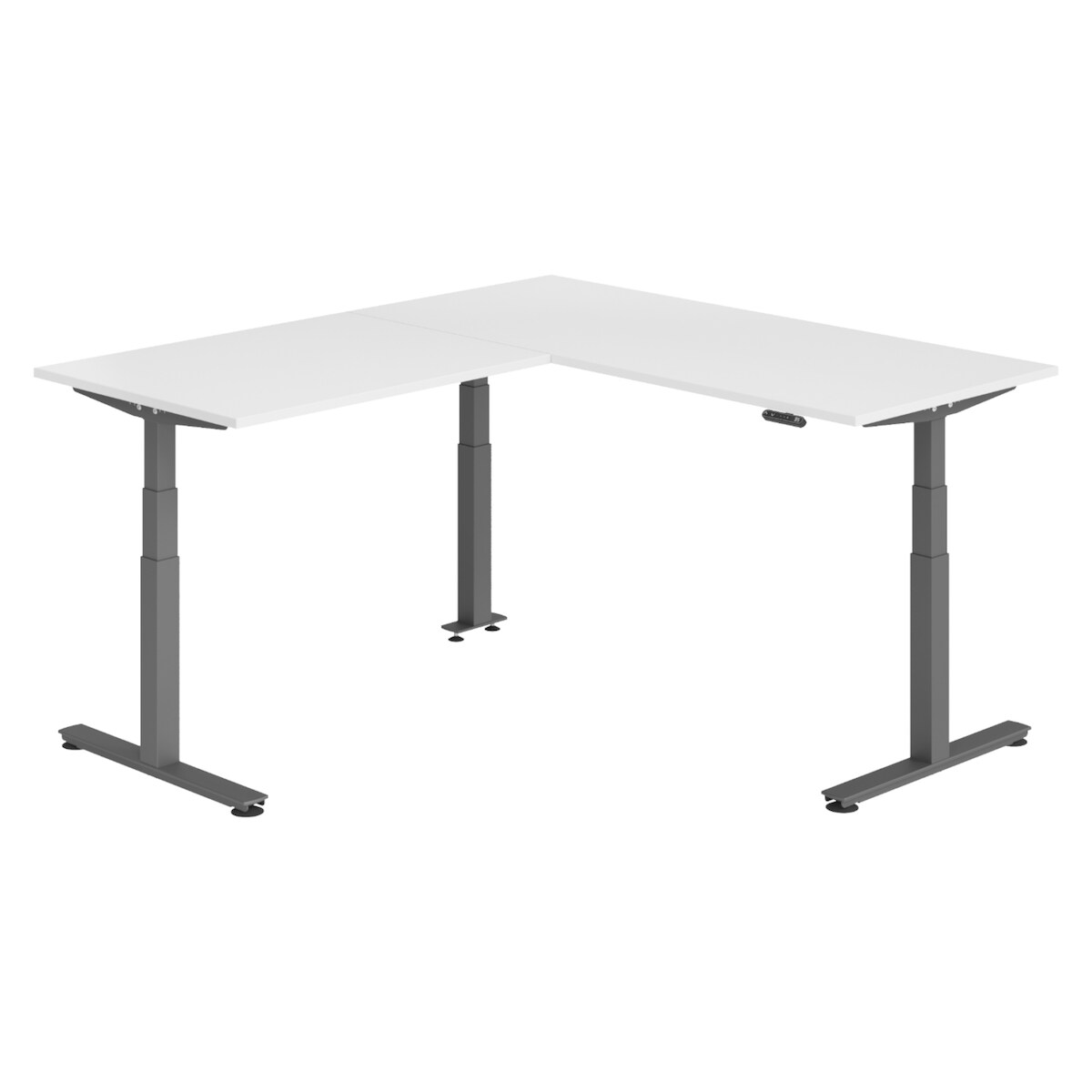 bümö Eckschreibtisch elektrisch höhenverstellbar L-Form: 180 x 200 cm in weiß, Gestell graphit - Stehschreibtisch mit Memory-Steuerung, elektrischer