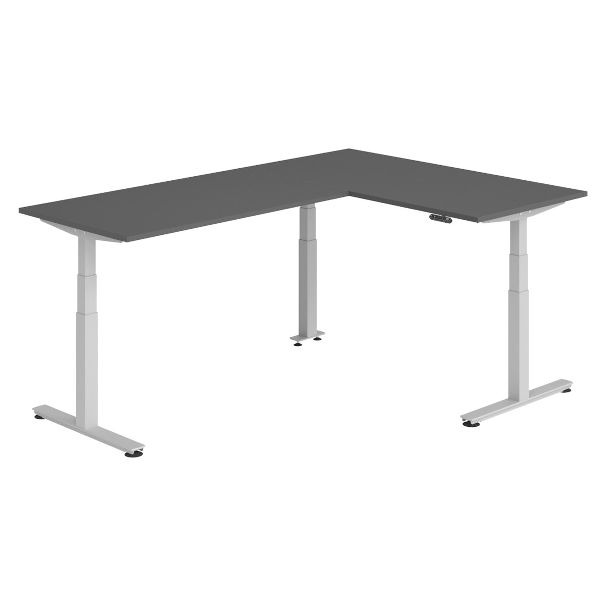 bümö Eckschreibtisch elektrisch höhenverstellbar L-Form: 160 x 240 cm in graphit, Gestell silber - Stehschreibtisch mit Memory-Steuerung,