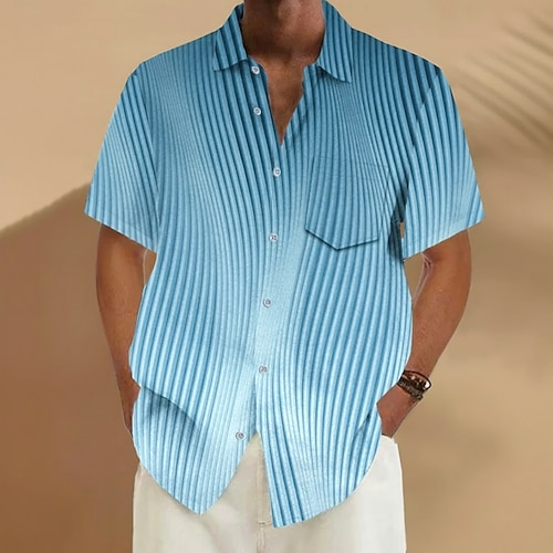 Per uomo Geometrico Sfumatura A righe Camicia Camicia Estiva Camicia con Bottoni Manica Corta Moda Casual All'aperto Vacanza Abbigliamento Quotidiano Estate Primavera Collo ripiegato Stampa 3D