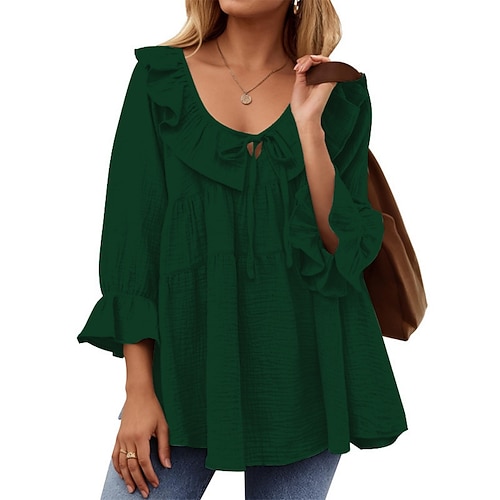 Per donna Camicia Blusa Tinta unica Semplice Vintage Elegante Moderno Manica Lunga Girocollo Top Regolari Quotidiano Ferie Uscire Patchwork Blu Nero Verde chiaro Verde Cachi Estate Primavera