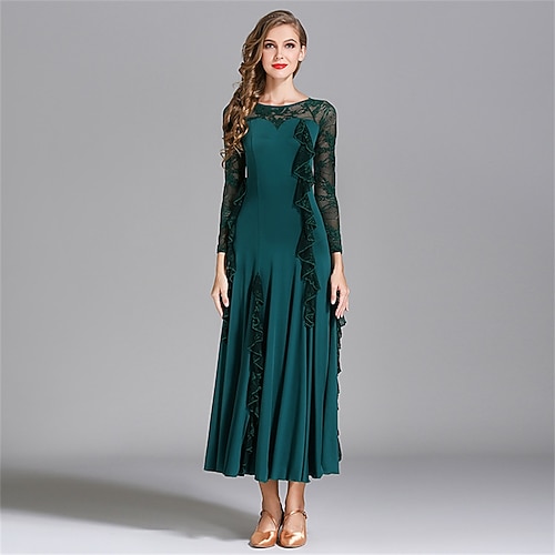 abito da ballo moderno a maniche lunghe da donna, abito da allenamento, costume da ballo da sala