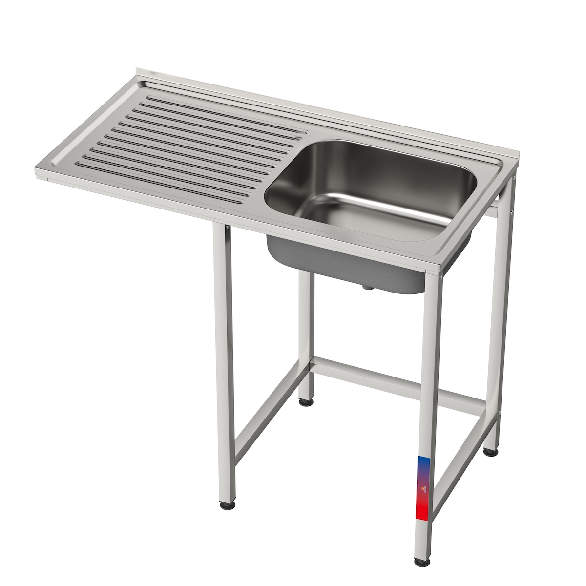 Gasfrit – Unterbau-Spülbecken mit 1 Becken und 1 Abtropffläche, industriell, aus Edelstahl, mit Fach für Gläserspülmaschine, 1000 x 500 x 850 mm.