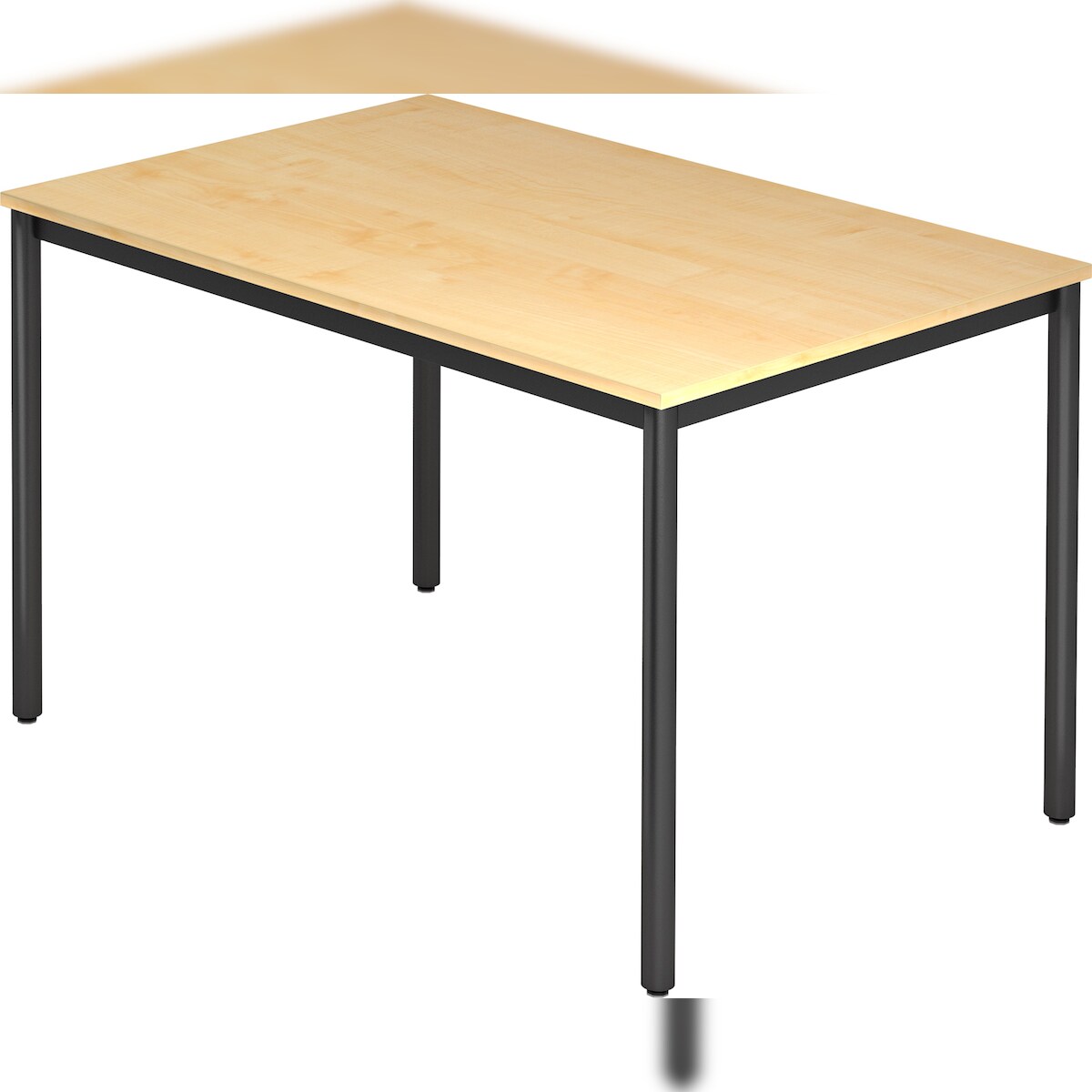 bümö Multifunktionstisch Ahorn, Tisch 120 x 80 cm, Tischfuß rund in schwarz - einfacher Tisch klein, Besprechungstisch System D-Serie,