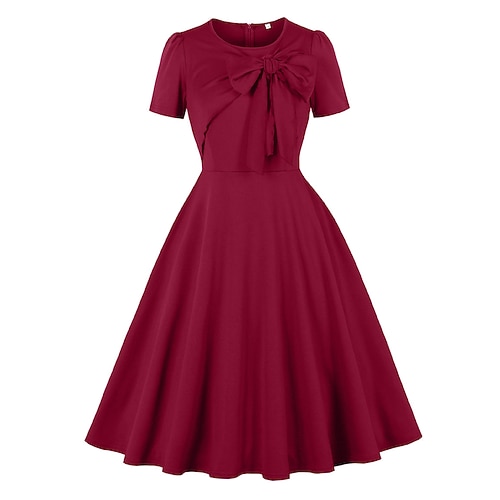 Retrò Vintage Anni 1950 Rockabilly Lunghezza al ginocchio Vestito Abito da cocktail Abito Swing Ad aletta Tinta unica Linea ad A Aderente Svasato Costume Per donna Natale San Valentino Feste